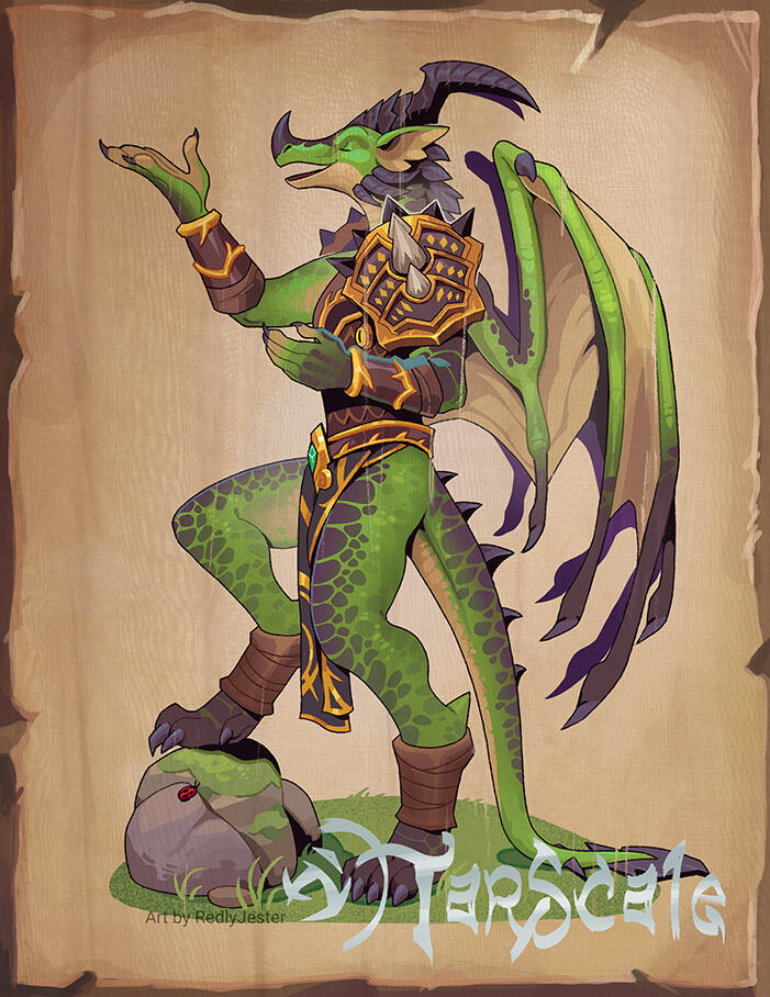 Depicts the fellowship of the brave dragonkin from The Lord of the Wings.